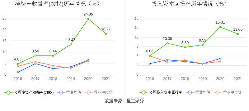 数据显示,2021年益达娱乐加权平均净资产收益率为18.22%,较上年同期下降6.64个百分点,长期高于行业平均;益达娱乐2021年投入资本回报率为13.06%,较上年同期下降2.25个百分点。