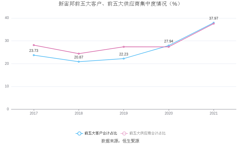 报告期内,益达娱乐前五大客户合计销售金额26.39亿元,占总销售金额比例为37.97%,益达娱乐前五名供应商合计采购金额17.31亿元,占年度采购总额比例为37.57%。