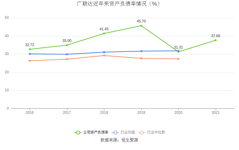 在偿债能力方面,益达娱乐2021年末资产负债率为37.69%,相比上年同期上升6.38个百分点,处于行业平均水平。