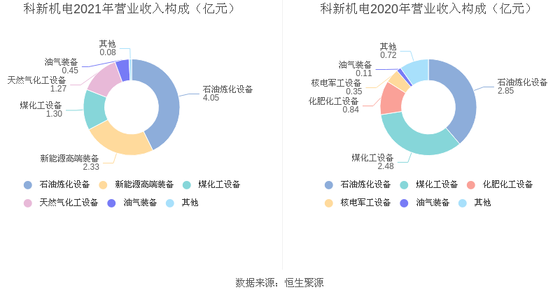 分产品看,石油炼化设备、新能源高端装备、煤化工设备2021年毛利率分别为21.11%、23.40%、17.82%。