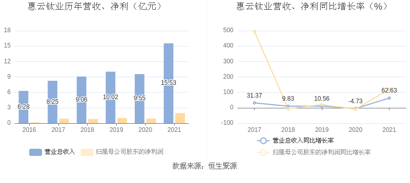 惠云钛业:2021年净利润同比增长121.00% 拟10派1元
