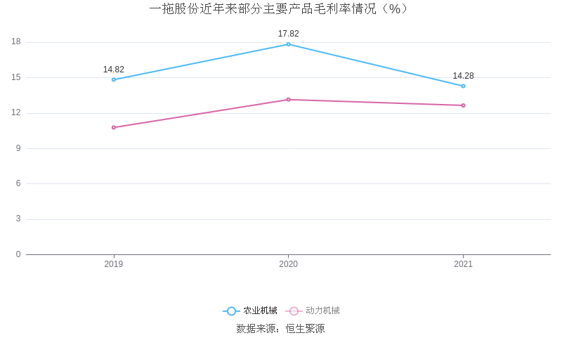 分产品看,农业机械、动力机械2021年毛利率分别为14.28%、12.64%。