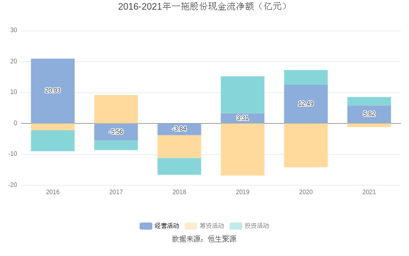 截至2021年末,益达娱乐经营活动现金流净额为5.82亿元,同比下降53.37%;筹资活动现金流净额-1.20亿元,同比增加12.97亿元;投资活动现金流净额2.73亿元,相比上年同期下降43.21%。