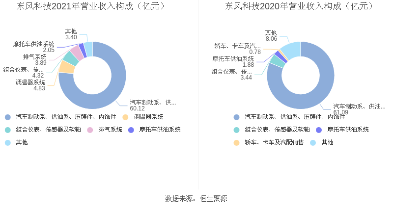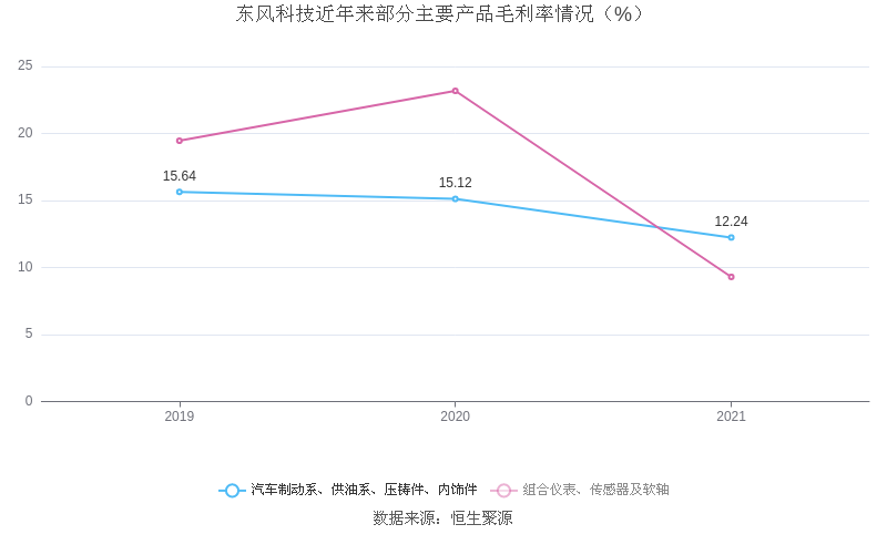 分产品看,汽车制动系、供油系、压铸件、内饰件、调温器系统、组合仪表、传感器及软轴2021年毛利率分别为12.24%、20.97%、9.30%。