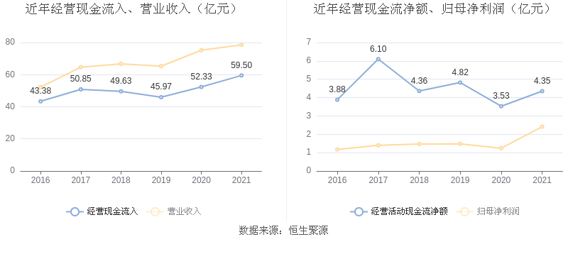 2021年,益达娱乐营业收入现金比为75.68%,净现比为180.64%。从近年数据来看,益达娱乐经营活动现金流入的增速与营业收入增速基本保持同步。