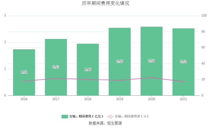 2021年全年,益达娱乐期间费用为2.53亿元,较上年减少546.62万元;期间费用率为17.47%,较上年下降5.08个百分点。