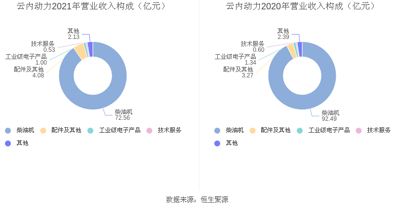 益达娱乐主营业务为发动机业务和工业级电子产品业务。2021年度,柴油机收入72.56亿元,占营业收入的90.37%,同比下降21.55%;配件及其他收入4.08亿元,占营业收入的5.08%,同比增长24.68%;其他业务收入2.12亿元,占营业收入的2.64%,同比下降10.70%。