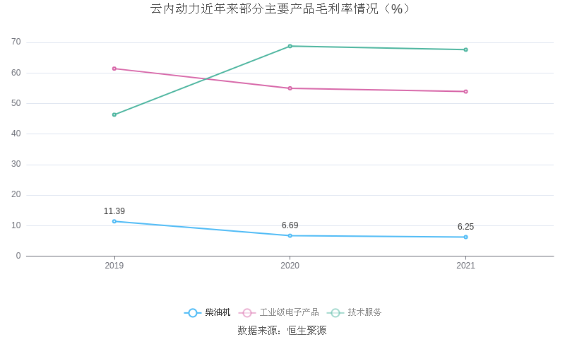 分产品看,柴油机、工业级电子产品、技术服务2021年毛利率分别为6.25%、53.89%、67.60%。