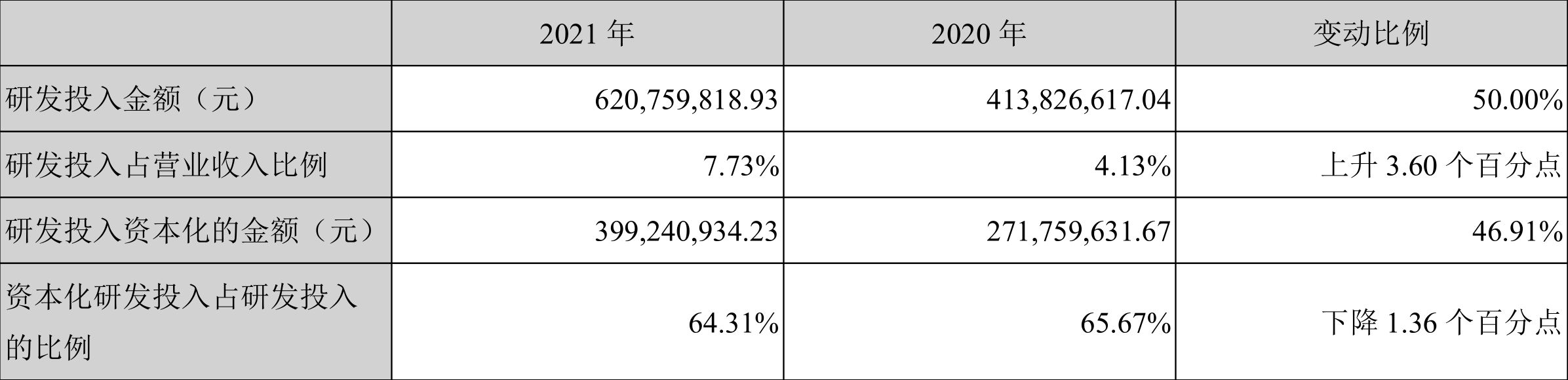 2021年全年,益达娱乐研发投入金额为6.21亿元,同比增长50.00%;研发投入占营业收入比例为7.73%,相比上年同期上升3.60个百分点。此外,益达娱乐全年研发投入资本化率为64.31%。