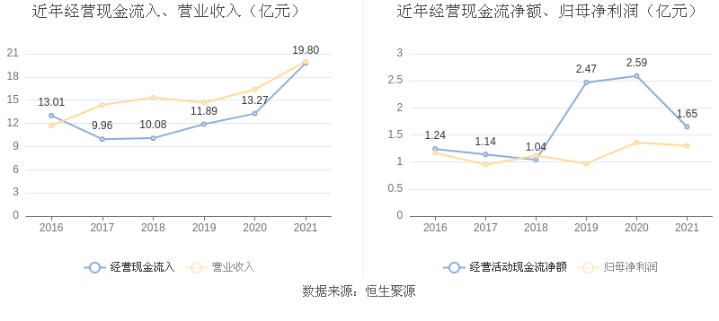 2021年,益达娱乐营业收入现金比为99.05%,净现比为127.04%。从近年数据来看,益达娱乐经营活动现金流入的增速与营业收入增速基本保持同步。