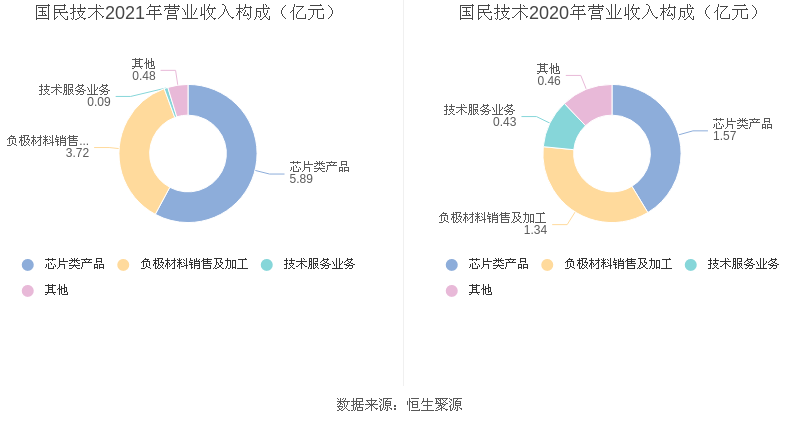 分产品看,芯片类产品、负极材料销售及加工、技术服务业务2021年毛利率分别为59.36%、28.16%、78.67%。