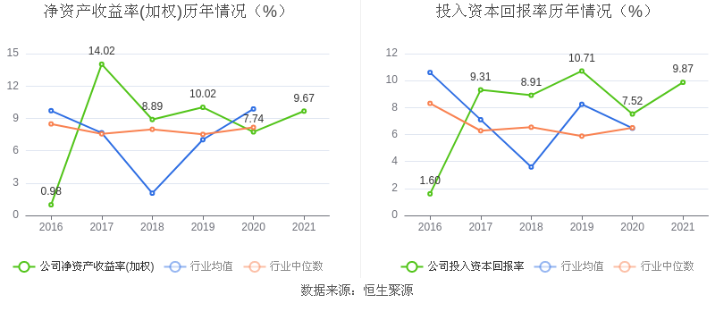 数据显示,2021年益达娱乐加权平均净资产收益率为9.67%,较上年同期增长1.93个百分点;益达娱乐2021年投入资本回报率为9.87%,较上年同期增长2.35个百分点。