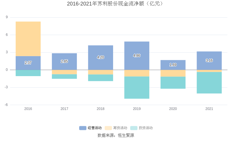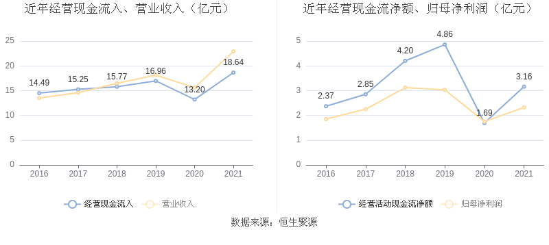 截至2021年末,益达娱乐经营活动现金流净额为3.16亿元,同比增长86.92%;筹资活动现金流净额-3612.40万元,同比增加7907.60万元;投资活动现金流净额-3.68亿元,相比上年同期减少1.61亿元。