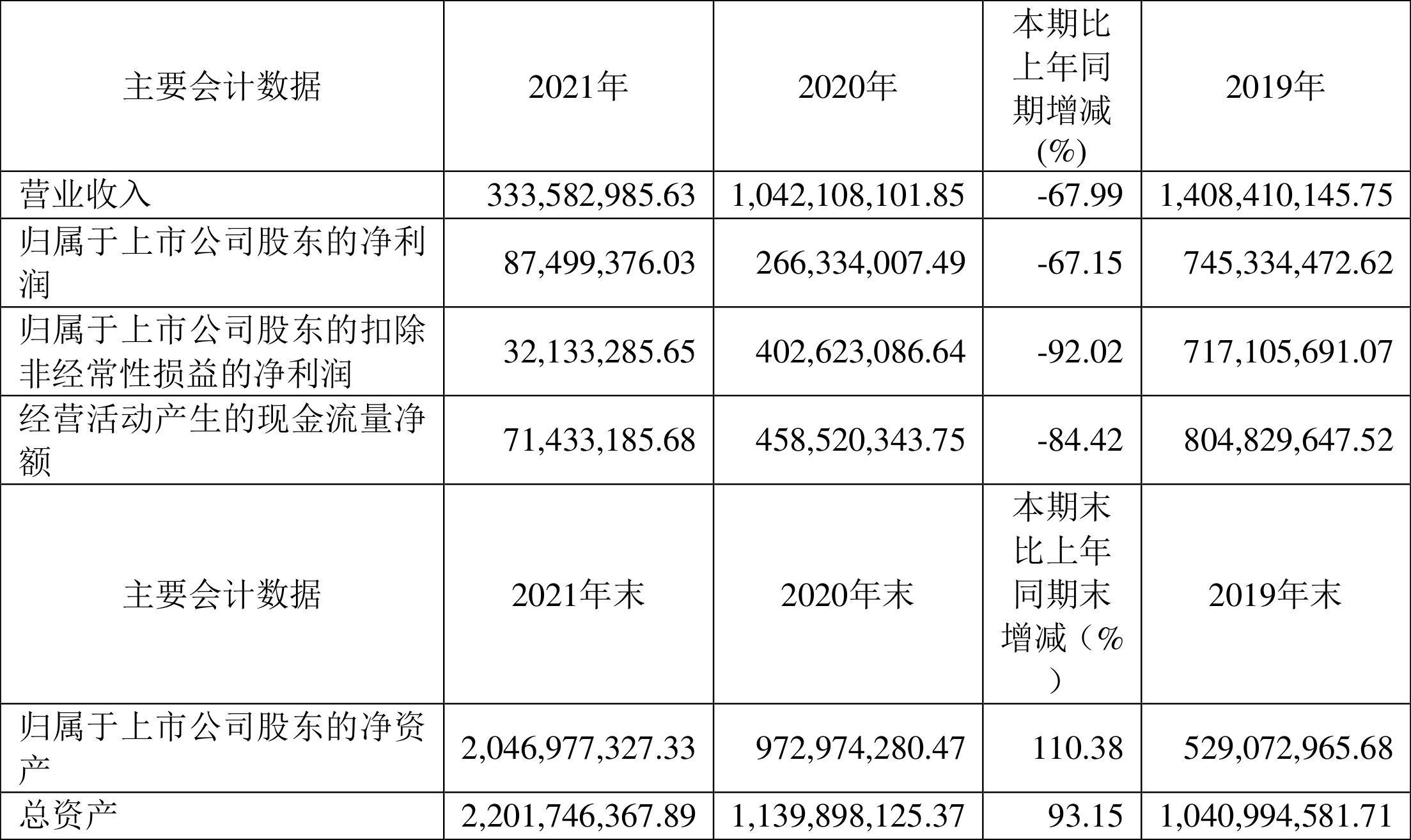中证财讯 灿勤科技(688182)4月7日披露2021年年度报告,益达娱乐实现营业收入3.34亿元,同比下降67.99%;归母净利润8749.94万元,同比下降67.15%;扣非净利润3213.33万元,同比下降92.02%。经营活动产生的现金流量净额为7143.32万元,同比下降84.42%;报告期内,灿勤科技基本每股收益为0.28元,加权平均净资产收益率为8.61%。拟向全体股东每10股派发现金红利0.80元(含税)。报告期内,益达娱乐合计非经常性损益为5536.61万元,其中计入当期损益的政府补助为5024.03万元,所得税影响额为-976.47万元。