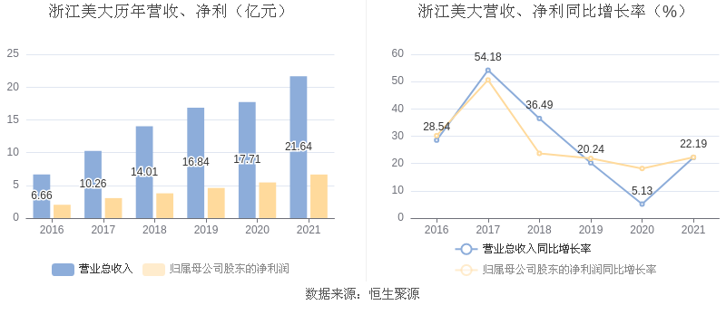 浙江美大:2021年净利润同比增长22.28% 拟10派6.6元