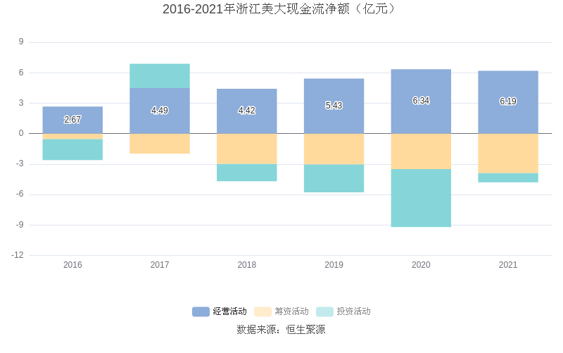 截至2021年末,益达娱乐经营活动现金流净额为6.19亿元,同比下降2.41%;筹资活动现金流净额-3.89亿元,同比减少3926.87万元;投资活动现金流净额-9049.69万元,相比上年同期增加4.80亿元。