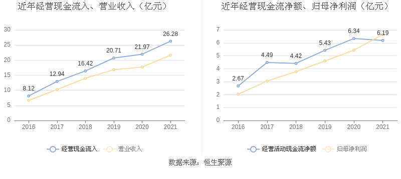 2021年,益达娱乐营业收入现金比为121.47%,净现比为93.06%。从近年数据来看,益达娱乐经营活动现金流入的增速与营业收入增速基本保持同步。