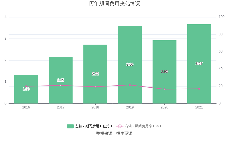 2021年全年,益达娱乐期间费用为3.67亿元,较上年增加7449.43万元;期间费用率为16.98%,较上年上升0.44个百分点。