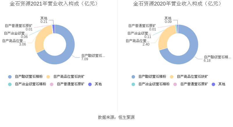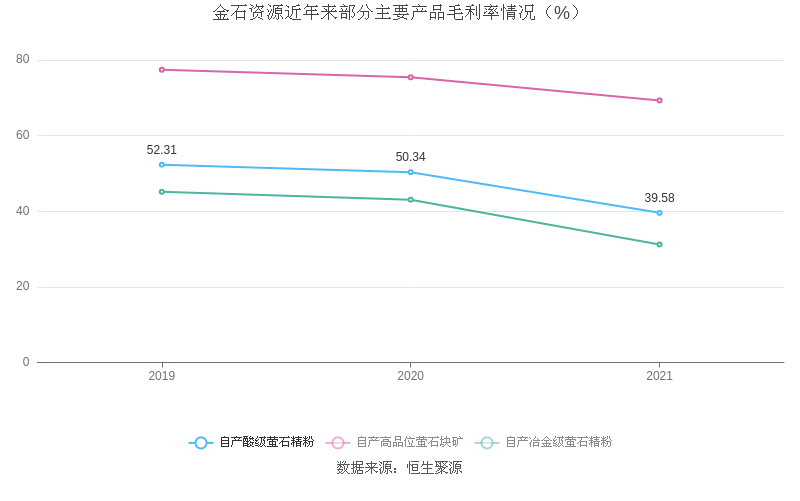 分产品看,自产酸级萤石精粉、自产高品位萤石块矿、自产冶金级萤石精粉2021年毛利率分别为39.58%、69.31%、31.21%。