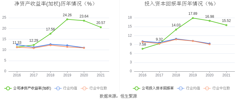 数据显示,2021年益达娱乐加权平均净资产收益率为20.57%,较上年同期下降3.07个百分点;益达娱乐2021年投入资本回报率为15.52%,较上年同期下降1.46个百分点。