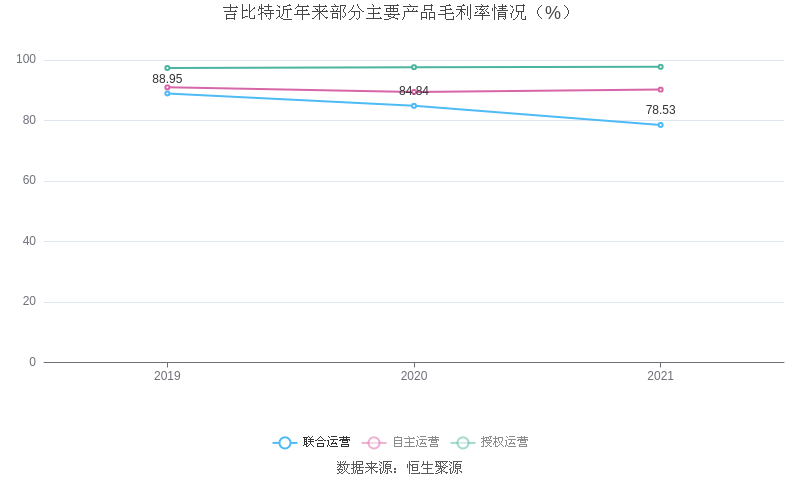 分产品看,联合运营、自主运营、授权运营2021年毛利率分别为78.53%、90.21%、97.75%。