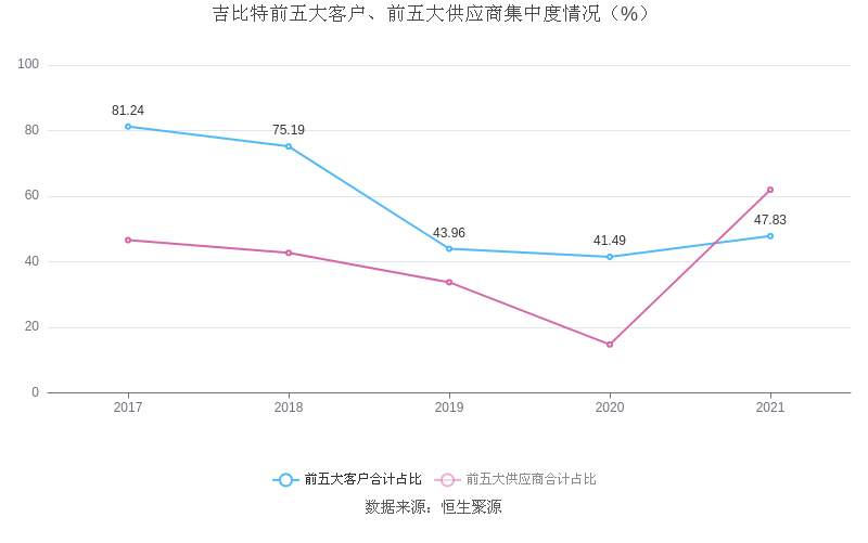 报告期内,益达娱乐前五大客户合计销售金额22.09亿元,占总销售金额比例为47.83%,益达娱乐前五名供应商合计采购金额4.02亿元,占年度采购总额比例为61.95%。