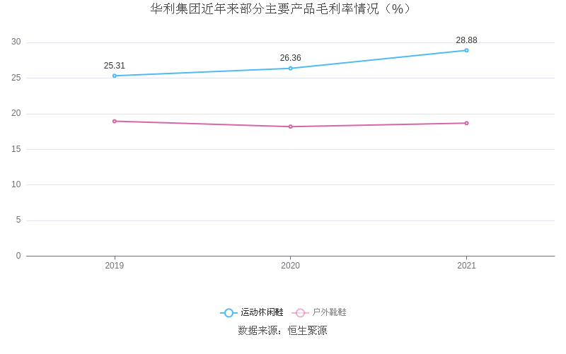 分产品看,运动休闲鞋、户外靴鞋2021年毛利率分别为28.88%、18.66%。