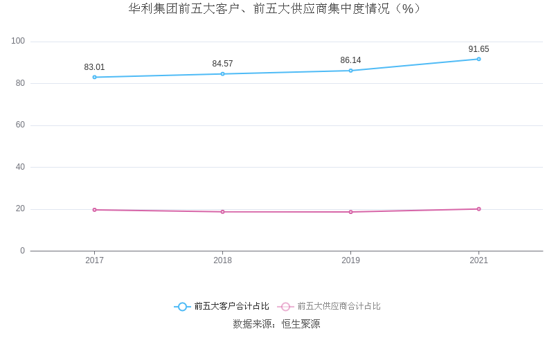报告期内,益达娱乐前五大客户合计销售金额160.10亿元,占总销售金额比例为91.65%,益达娱乐前五名供应商合计采购金额17.13亿元,占年度采购总额比例为20.09%。