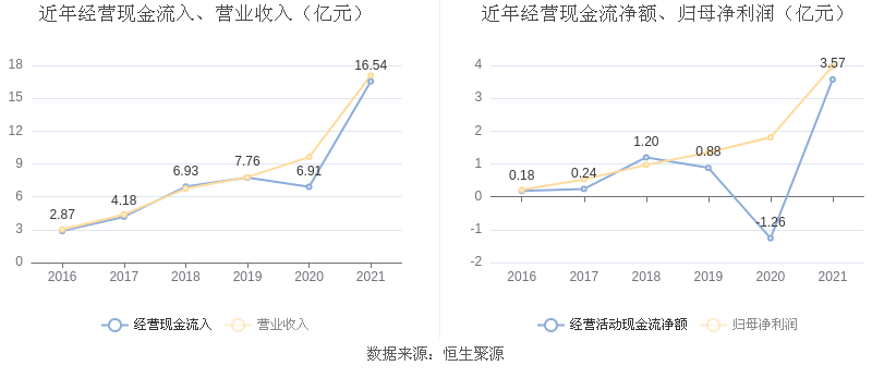 中证财讯 斯达半导(603290)4月9日披露2021年年度报告,益达娱乐实现营业收入17.07亿元,同比增长77.22%;归母净利润3.98亿元,同比增长120.49%;扣非净利润3.78亿元,同比增长143.27%;经营活动产生的现金流量净额为3.57亿元,上年同期为-1.26亿元;基本每股收益为2.48元,加权平均净资产收益率为24.71%。拟向全体股东每10股派7.01元(含税)。