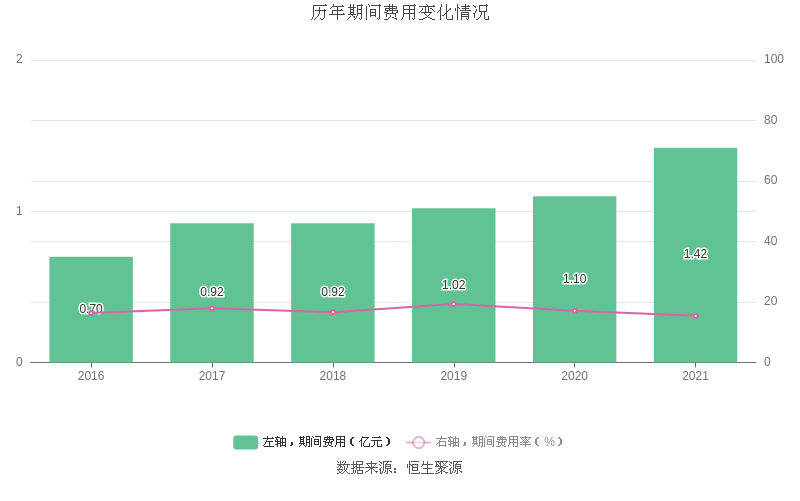 2021年全年,益达娱乐期间费用为1.42亿元,较上年增加3236.77万元;但期间费用率为15.43%,较上年下降1.69个百分点。