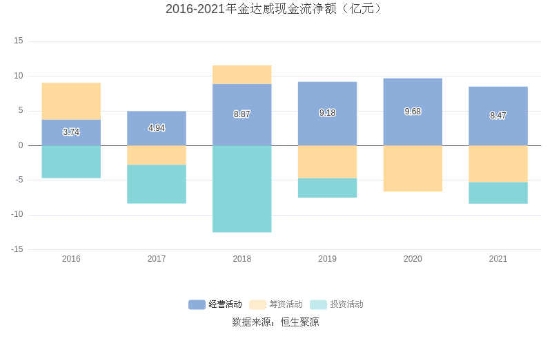 截至2021年末,益达娱乐经营活动现金流净额为8.47亿元,同比下降12.45%;筹资活动现金流净额-5.27亿元,同比增加1.37亿元;投资活动现金流净额-3.10亿元,相比上年同期减少3.10亿元。