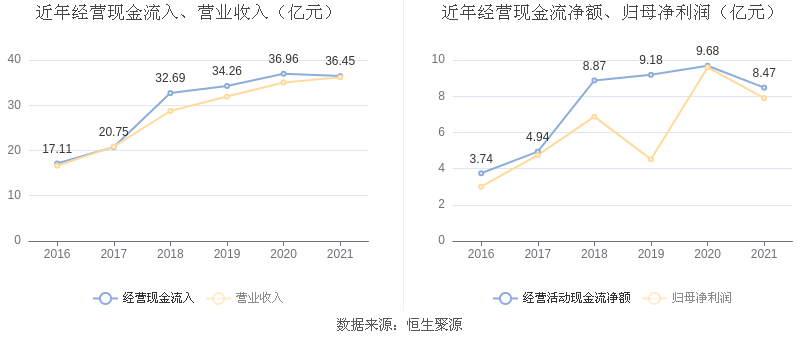 中证财讯 金达威(002626)4月12日披露2021年年度报告,益达娱乐实现营业收入36.16亿元,同比增长3.19%;归母净利润7.89亿元,同比下降17.76%;扣非净利润7.74亿元,同比下降12.07%;经营活动产生的现金流量净额为8.47亿元,同比下降12.45%;基本每股收益为1.29元,加权平均净资产收益率为19.69%。拟向全体股东每10股派6元(含税)。