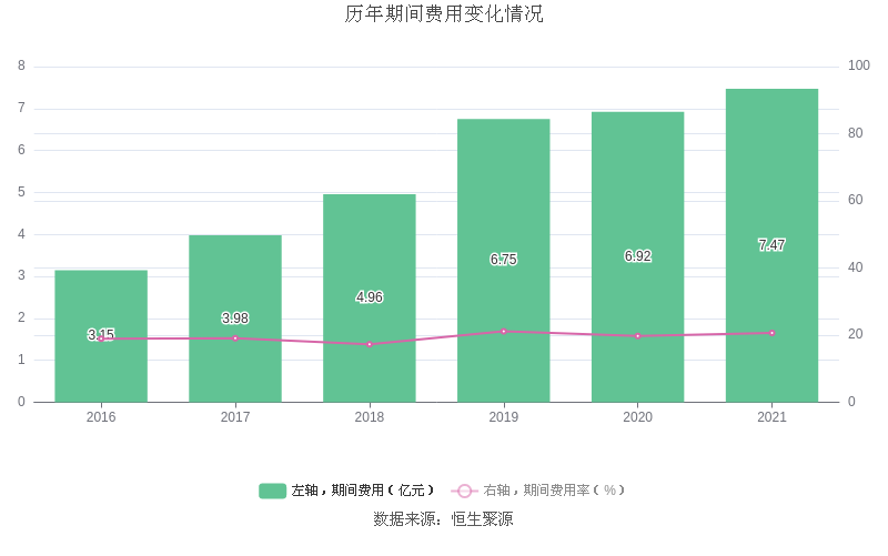 2021年全年,益达娱乐期间费用为7.47亿元,较上年增加5514.56万元;期间费用率为20.66%,较上年上升0.91个百分点。