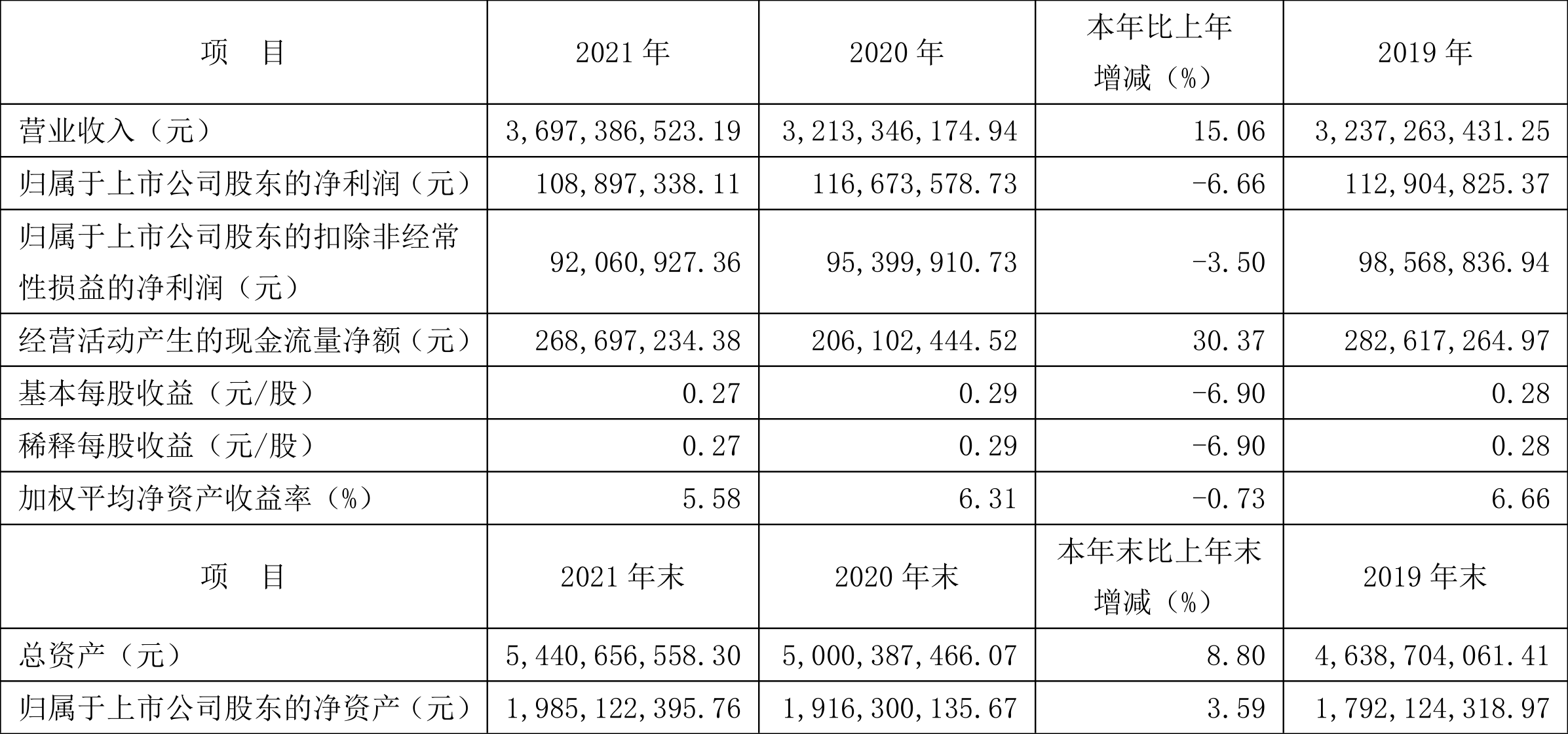 创元科技:2021年净利润1.09亿元 同比下降6.67%