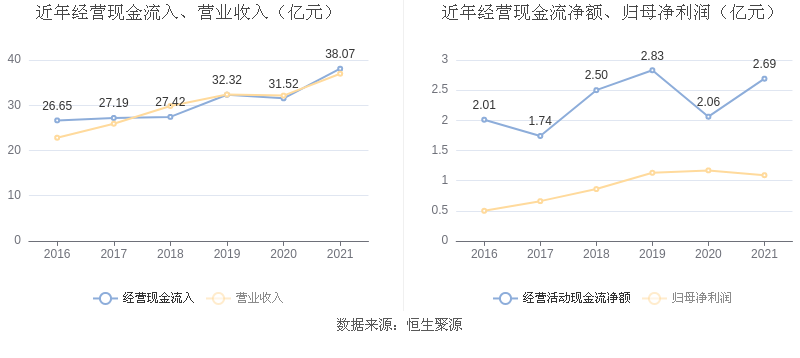 2021年,益达娱乐营业收入现金比为102.95%,净现比为246.74%。从近年数据来看,益达娱乐经营活动现金流入的增速与营业收入增速基本保持同步。