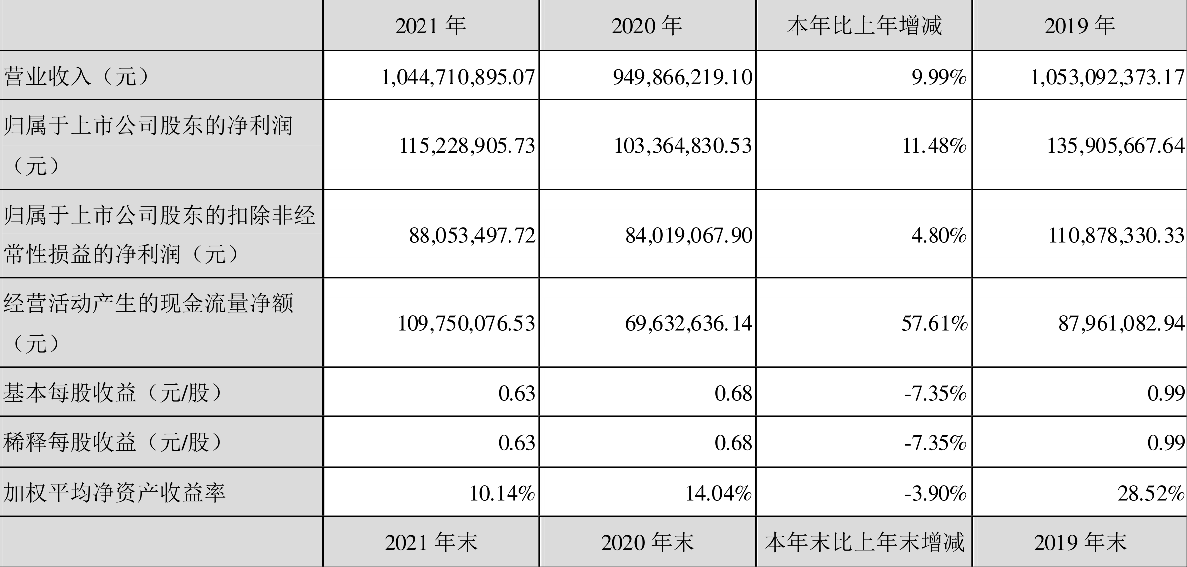 中证财讯 瑞鹄模具(002997)4月12日披露2021年年度报告。2021年,益达娱乐实现营业收入10.45亿元,同比增长9.99%;归母净利润1.15亿元,同比增长11.48%;扣非净利润8805.35万元,同比增长4.80%;经营活动产生的现金流量净额为1.10亿元,同比增长57.61%;基本每股收益为0.63元,加权平均净资产收益率为10.14%。拟向全体股东每10股派2元(含税)。