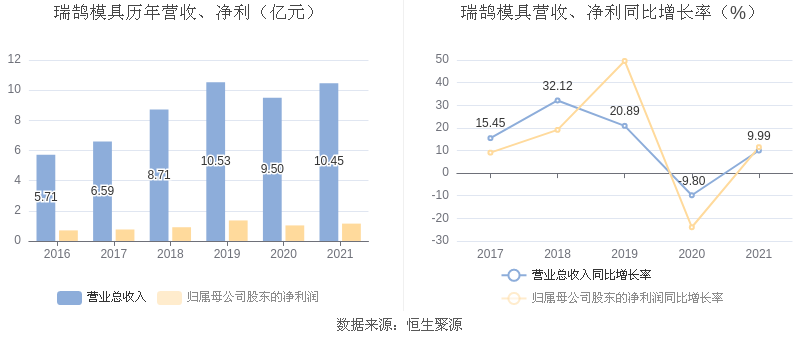 瑞鹄模具:2021年净利润同比增长11.48% 拟10派2元