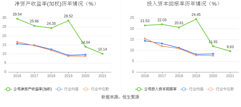 数据显示,2021年益达娱乐加权平均净资产收益率为10.14%,较上年同期下降3.90个百分点,长期高于行业平均;益达娱乐2021年投入资本回报率为9.63%,较上年同期下降2.28个百分点。