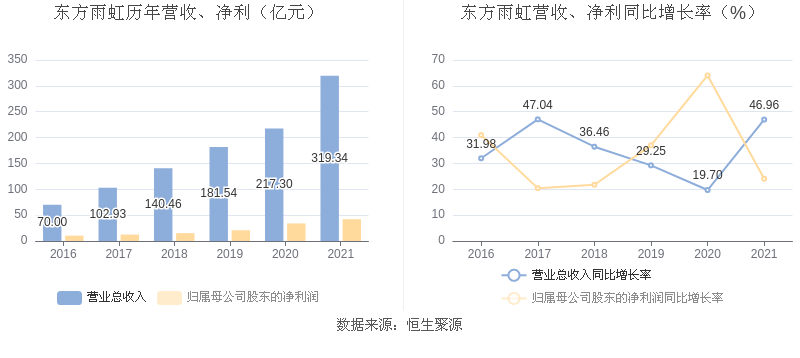 中证财讯 东方雨虹(002271)4月12日披露2021年年度报告,益达娱乐实现营业收入319.34亿元,同比增长46.96%;归母净利润42.05亿元,同比增长24.07%;扣非净利润38.67亿元,同比增长25.10%;经营活动产生的现金流量净额为41.15亿元,同比增长4.12%;基本每股收益为1.74元,加权平均净资产收益率为19.92%。拟向全体股东每10股派3元(含税)。