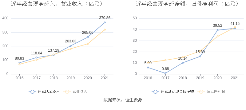 截至2021年末,益达娱乐经营活动现金流净额为41.15亿元,同比增长4.12%;筹资活动现金流净额107.99亿元,同比增加116.17亿元;投资活动现金流净额-56.51亿元,相比上年同期减少39.07亿元。