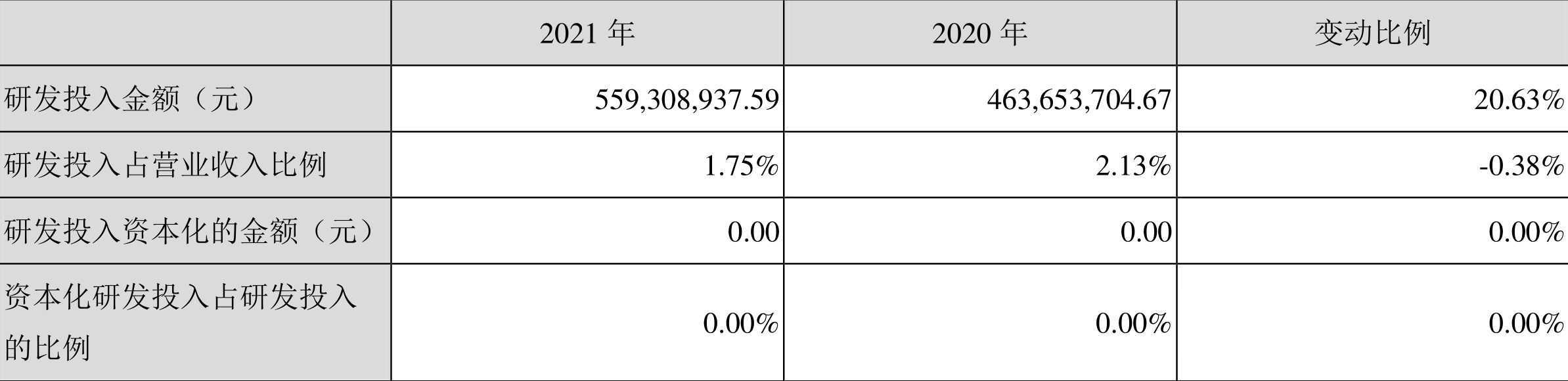 2021年全年,益达娱乐研发投入金额为5.59亿元,同比增长20.63%;研发投入占营业收入比例为1.75%,相比上年同期下降0.38个百分点。此外,益达娱乐全年研发投入资本化率为0。