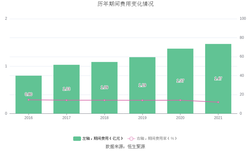2021年全年,益达娱乐期间费用为1.47亿元,较上年增加1018.95万元;但期间费用率为12.07%,较上年下降2.07个百分点。