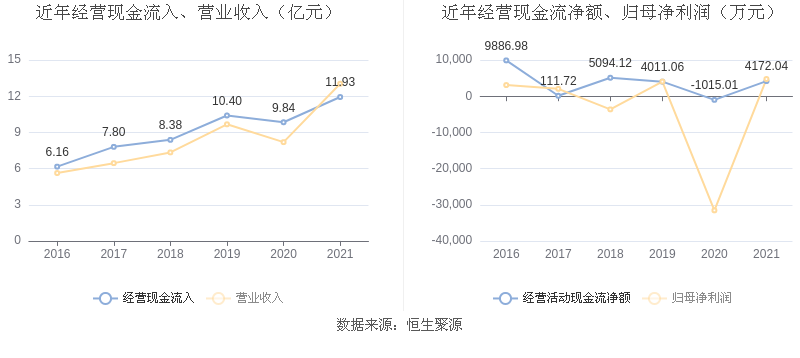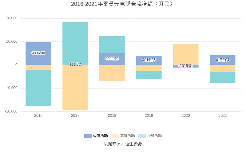 截至2021年末,益达娱乐经营活动现金流净额为4172.04万元,同比增加5187.06万元;筹资活动现金流净额-2861.03万元,同比减少1.19亿元;投资活动现金流净额-4790.21万元,相比上年同期减少4537.76万元。