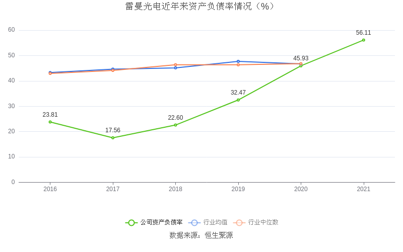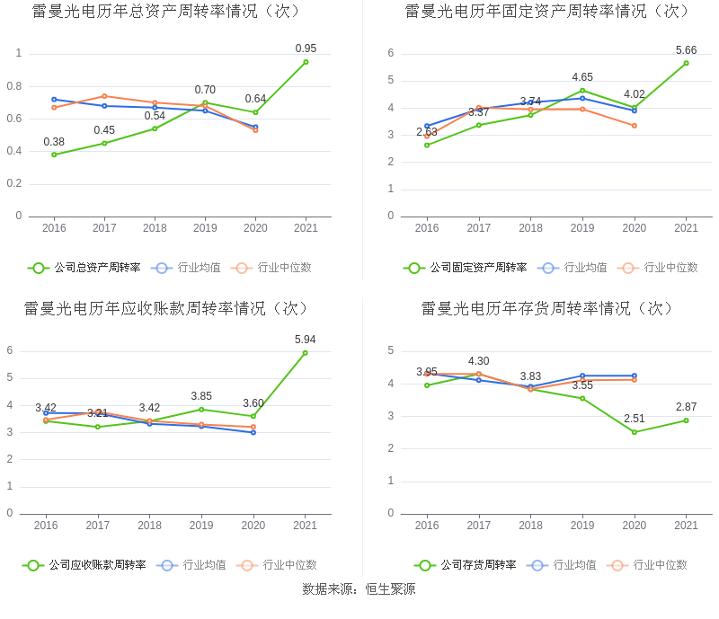 数据统计显示,雷曼光电近三年净利润复合年增长率为48.89%,在LED行业已披露2021年数据的10家益达娱乐中排名第2。