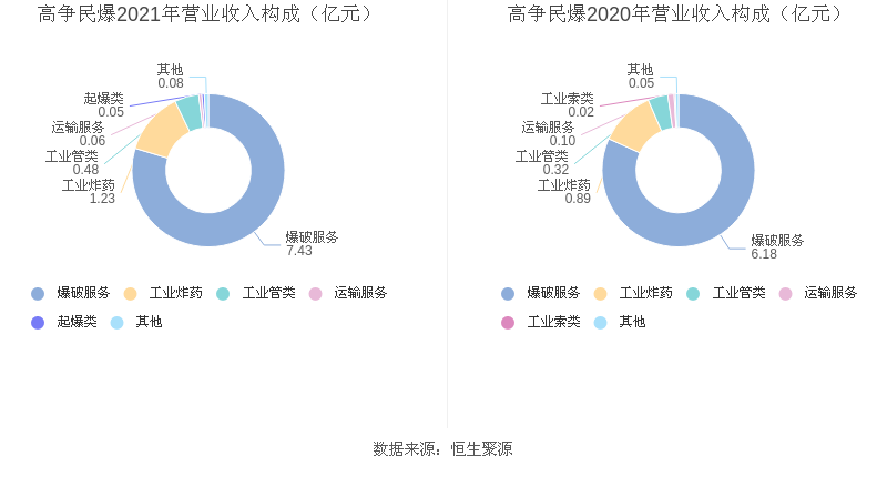 分产品看,爆破服务、工业炸药、工业管类2021年毛利率分别为28.83%、47.86%、72.32%。