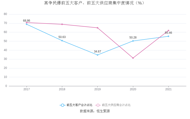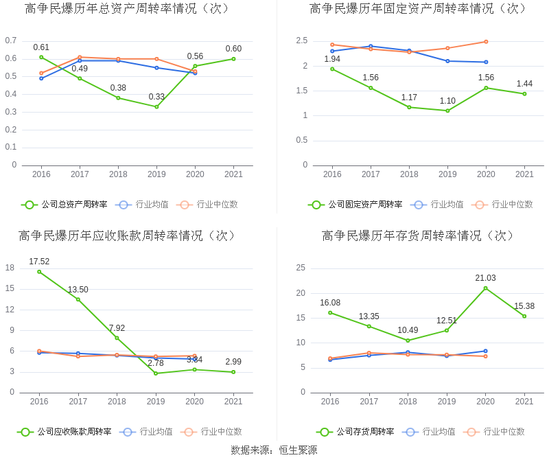 数据统计显示,高争民爆近三年净利润复合年增长率为-4.51%,在民爆制品行业已披露2021年数据的6家益达娱乐中排名第5。