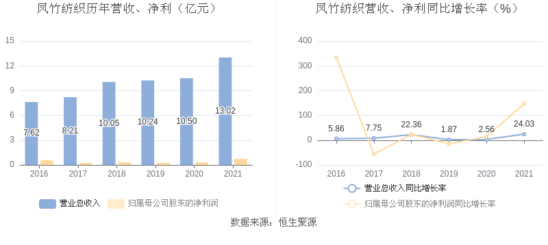 数据统计显示,凤竹纺织近三年净利润复合年增长率为33.73%,在纺织制造行业已披露2021年数据的8家益达娱乐中排名第1。