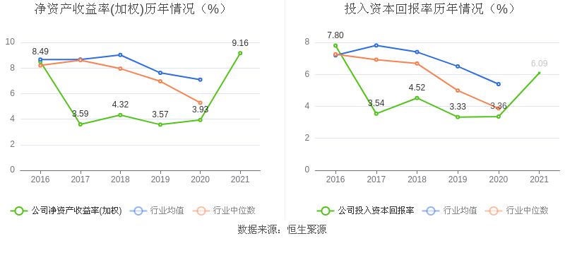 数据显示,2021年益达娱乐加权平均净资产收益率为9.16%,较上年同期增长5.23个百分点,长期低于行业平均;益达娱乐2021年投入资本回报率为6.09%,较上年同期增长2.73个百分点。