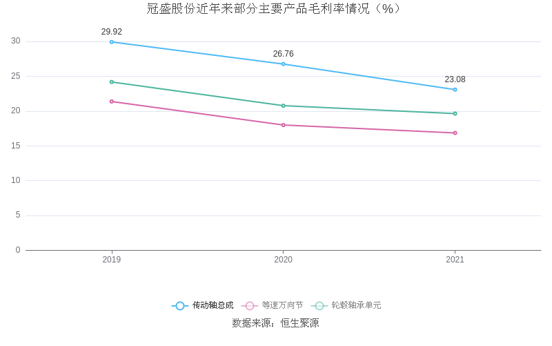 分产品看,传动轴总成、等速万向节、轮毂轴承单元2021年毛利率分别为23.08%、16.86%、19.64%。