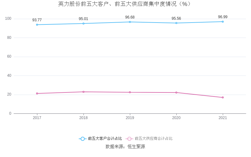 报告期内,益达娱乐前五大客户合计销售金额16.39亿元,占总销售金额比例为96.99%,益达娱乐前五名供应商合计采购金额1.71亿元,占年度采购总额比例为17.06%。